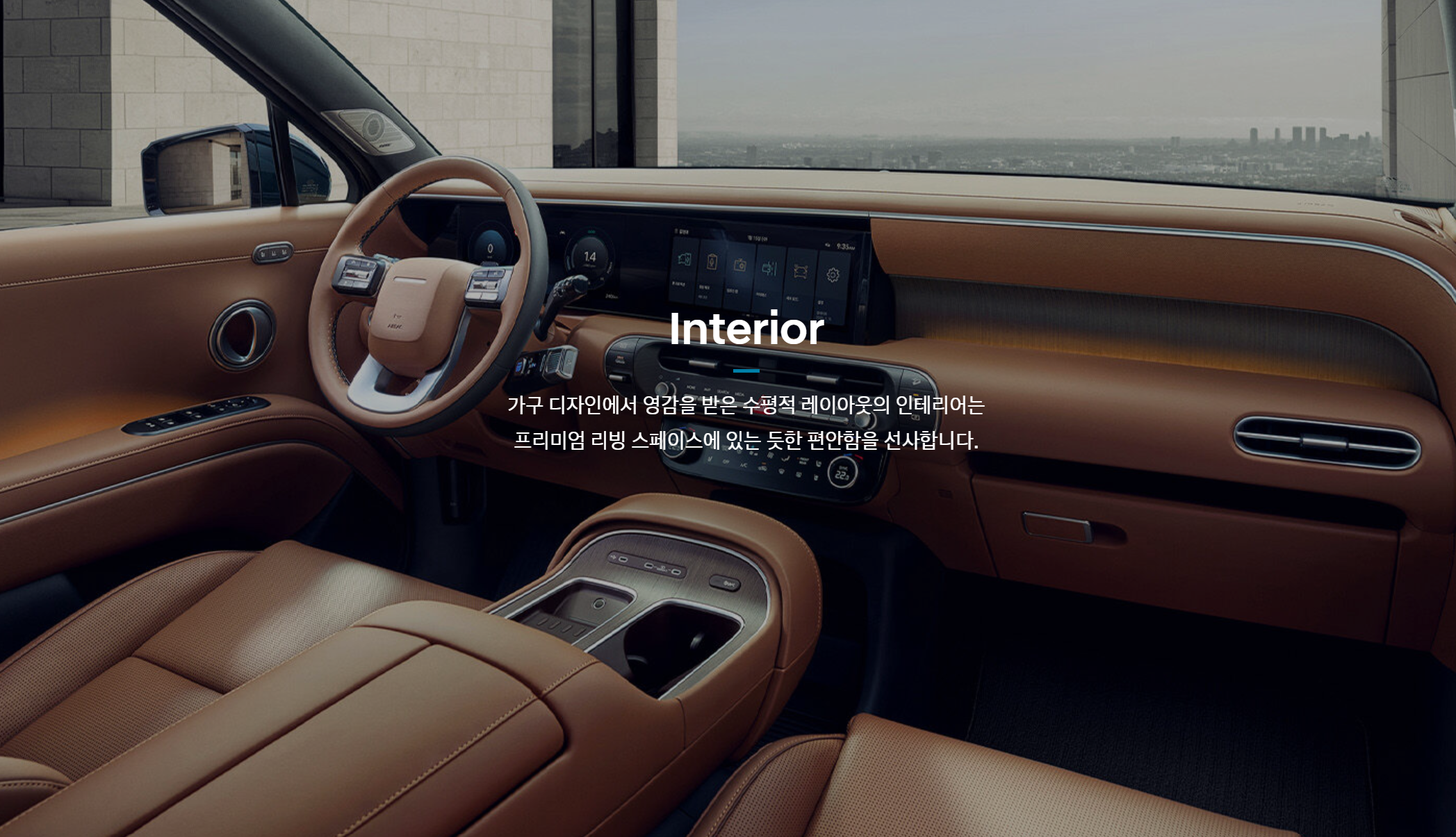 시트 소재는 프리미엄 나파 가죽, 천연 우드 그레인, 금속 질감 마감 등 고급 소재를 아낌없이 사용하였으며, 앰비언트 라이트와 사운드 시스템(BOSE 프리미엄 옵션)도 한층 강화되었다.